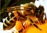 und pflanzlichem Eiweiß, von Blütenpollen. Ihr Hinterleib ist braun mit grauen